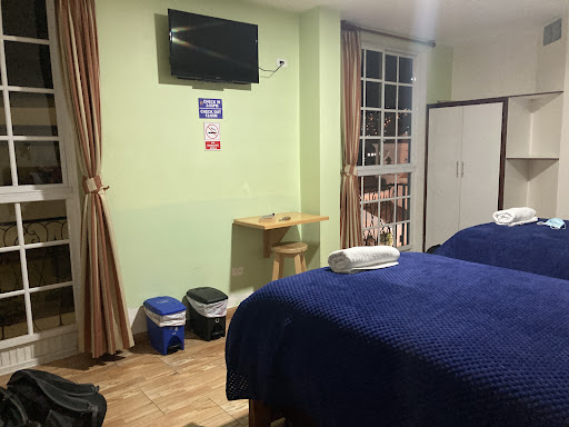 We arrived late at night, at 00:30, when we first arrived we were told to be quiet. And to speak in silent even though we weren't screaming just saying hello. The first impression was a bit bad (but also because we got stolen on the bus from baños, PLEASE BE CAREFUL WHEN YOU'RE TAKING A LATE BUS. DON'T LEAVE YOUR YOUR STUFF UNDER YOUR LEGS. DON'T SAY IT WON'T HAPPEN TO ME). So we arrived from the terminal in the south and paid 10$ (we've been told it's a fair price don't go up if it's more than that, negotiate) when we entered the room, it was very clean, the beds are tall and the mattress is comfortable, there are body towels and a small towel for the hands, soap, TV the WiFi is great, there was even two glasses of water! There are light above each bed! When we woke up to go to the police station the manager took care of us and arranged someone to help us, it was very kind. Changed our impression. The breakfast is just what you need (eggs, granola, yogurt, fruits, juice, coffee, bread, jam, water), you just have to wash your plates after thr breakfast, the view is nice! When we arrived in the afternoon the room was cleaned and it felt like an hotel. The location is not thr best in my opinion but it's not very far. It's close to parque san blas... Not a place to get to know people, each one to himself... This is the atmosphere in here, but it's if you're not looking to make new friends. You can hear everything that people are talking downstairs from...