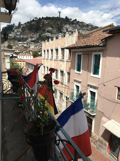 Comfiest beds I've had in the 3 weeks of being in ecuador, feels like my own sheets at home! huge rooms, amazing views out the window of the Statue beautiful deck, main lounge, outside patio, kitchen, etc, very Colonial true to the name. hot water 24/7, great flow Super kind staff rooms have a dresser, table, tons of space and my God big French windows that opened. great location rooftop has chairs and shower if you workout there. Free water that is accessible 24-7 (some places lock the kitchen access at night!)