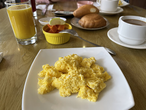 PROS: The service was excellent and the staff is very friendly and helpful. Great location! It’s a 10 min walk away from Parque Calderón. Close to a pharmacy, restaurants and general stores and also a museum of modern art ( free entrance) -Includes a delicious and very filling breakfast that includes: bread, fresh fruit, juice, coffee and scrambled eggs. There was bottled water and the usual hotel toiletries. The bed was comfortable. The bathroom was clean and spacious with a good shower. The water pressure was great and so was the heat.