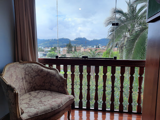 Read morePros: Este hotel es un espacio que sin duda recomendaría a toda persona que venga a Cuenca. El hotel cuenta con habitaciones muy cómodas (la nuestra tenía una genial vista al jardín), en una zona muy céntrica cerca de muchos landmarks de la ciudad. Muchos recepcionistas son amables y dispuestos a solucionar problemas, otro no tanto. Las señoras mucamas son muy amables y muchas veces nos trajeron el desayuno a la habitación. El baño de nuestra habitación tenía vidrios polarizados y era una sensación muy única y privilegiada bañarse viendo la ciudad. El primer día de noche me tropecé en el holding y se me regó un chocolate caliente en la alfombra. El recepcionista entendió lo sucedido y muy amablemente me dijo que no me preocupará. Sinceramente me asusté pensando que esto me generaría problemas teniendo que pagar la limpieza de la alfombra pero no fue así, lo cual agradezco mucho la comprensión de que los accidentes así de que se rieguen bebidas calientes pueden pasar.