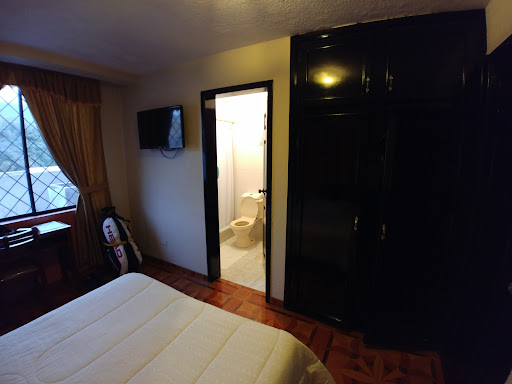 Read moreLa decoración tiene muchos elementos de temas muy aleatorios, entre cosas religiosas, murales andinos, candelabros pomposos y cosas doradas, sin más es un lugar extremadamente barroco. Las habitaciones son simples. Cama, tv con cable, agua caliente, wifi: lo suficiente y necesario. El colchón que me toco estaba medio duro. Tampoco tenía mesita de noche y tenía que conectar el celular lejos de mi alcance y por lo tanto era molesto si quería trabajar o navegar por Internet, etc. El servicio de limpieza estaba bien y el desayuno por unos cuantos dolares adicionales es ok: huevos jugo café fruta y pan. Si querés algo funcional y no te importa la estética o el buen gusto este es el lugar para ti. Los precios se puede decir que es un rango...