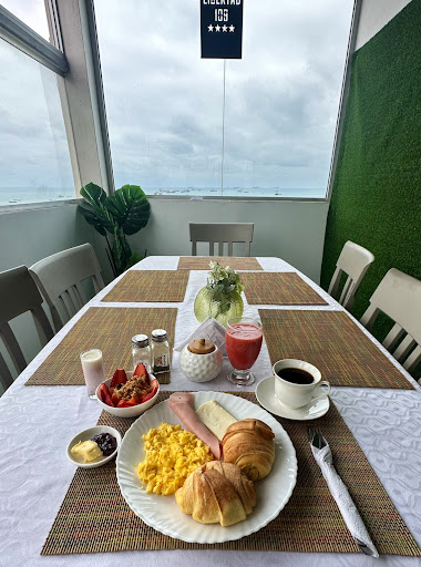 La ubicacion es espectacular para las personas q no disponen de vehiculo no tienen q gastar en taxi xq está en toda la zona centrica. A lado hay una farmacia del otro lado está el tia en la esquina una panaderia y a la vuelta un asadero delicioso y a unos pasos el mar que espectacular!Les pongo 4 estrellas únicamente xq las camas y las almohadas si son bien duritas . A mi en lo personal me gusta más suave y también x mi columna no tan rígido el colchón. El jacuzzi con la televisión fue muy lindo la atención también!! Y el desayuno...