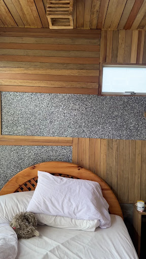 I went for one night to Papallacta with a colleague after attending a conference in Quito. We booked this hotel spontaneously without checking too much, and wow! what a great surprise.||Warning - this is NOT a standard hotel. It's more like a "fancy backpackers hostel". That being said, it's very clean and upclass, but don't expect the concierge, valet parking and mini bar. Instead, expect to have fun and enjoy!||Jonathan and Nanve (I hope I got his name right) run this place along with Jonathan's wife (I didn't catch her name). They built it with their own hands and every corner of this amazing lodge is a tribute to their hard work. It is covered with colorful artwork and interesting building concepts and architecture. I was lying in bed, looking at the "strange fire sprinklers" on the ceiling, wondering how they worked, when I realized they weren't fire sprinklers, but rather door handles... the whole ceiling of our room was made out of recycled doors!!!! It may sound strange, but it's ultra cool!||There are fun and games all around, from a Fussball table, to old couches, to board games and a little library with kids books, such as Pipi Longstockings and the Hungry Caterpillar. They run a little bar/restaurant with homemade local food and six homemade craft beers on tap. There are bikes and umbrellas and rain ponchos that you can borrow. There's good music playing. It's just great.||I was totally thrown back to my backpacking days - remembering the best hostels I stayed at in New Zealand. But I'm more than 15 years older now, and generally don't "rough it" as much any more, but here, I was in a clean, comfortable hotel, just with the hostel atmosphere. How great!||Thank you Jonathan and family for the great stay. I'm so glad we accidentally stumbled upon your...