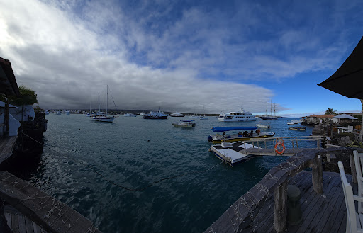 This hotel is located across the harbor, requiring water taxis to get there and back. This results in a very peaceful atmosphere compared to staying in the center of Puerto Ayora.||The staff were all very friendly and the food was good. Since the hotel is not in the center of town, we chose to eat dinner here twice during our stay. The menu was extremely limited but we enjoyed the fish dishes we ordered.||Our room had a nice harbor view but was in need of some updating. For example, there was only one available electrical socket in our room and it was located behind the desk. This room was obviously designed in a time when guests didn't bring many electrical devices. ||One thing we really appreciated was the hotel's laundry service which came in very handy halfway through our Galapagos trip. The service was very efficient and reasonably priced.||This is a good place to stay if you're looking for a quieter, peaceful stay away from the...