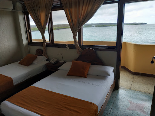 Read moreI loved a lot of things about this motel (hostal in Spanish). The property and our front bedroom overlooked the water right near the main part of Puerto Ayora. The owners and workers were all friendly and welcoming. Check-in was easy with our prepaid third-party booking. The room was clean, and the shower had very hot water. The property is simple and not fancy. The Internet is minimal and often non-existent.||Our main issues were that we reserved a family room, and there was only air conditioning (A.C.) in the room with the two single beds. There was no A.C. or fan in the room with the one bigger bed, and, as it was hot and humid outside, we could not close the door between the two bedrooms or it would be way too hot in the room with the one bigger bed. Neither could we leave the windows open at night, because it was too hot and humid out.||The other issue was a foul smell from the toilet when we would leave the lid open, so we had to constantly remind the kids to close the toilet lid. ||If there had been AC or a fan in the main bedroom, as we expected there would be, I would probably re-reserve this no-frills motel for a group of one to four people. However, without AC or a fan in the main bedroom, I would strongly consider staying at other properties...