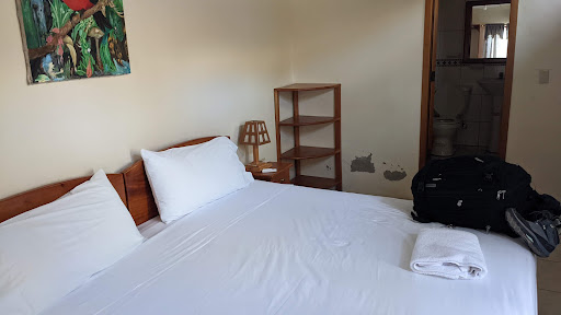 The WiFi only works in the garden area and when I stepped outside for service, my bare foot encountered a pile of chicken poo. Our room had little hairs all over the floor and the shower had a lot of grime. There was hot water in the shower but it would come in intense bursts then disappear for several minutes. Lastly, the beds felt like cardboard and the sheets were too small to share with my husband.