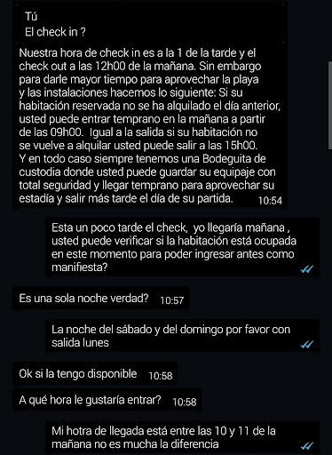 Read moreEstuvimos el fin de semana en Ayangue y llegamos al hotel Playa Aventura.|Es la segunda vez que llegó a este hotel y es la segunda vez que duermo con frío porque no hay frazadas en la habitación, pedí en recepción y nunca me dieron.|No hay agua caliente en la ducha.|Llegamos a la hora indicada del check in ( 1 PM) y no habían toallas para bañarse, baje a la recepción porque no hay teléfono para comunicarse y me dijeron están en la secadora; menos mal no espere mucho para que me las suban.|Íbamos a un matrimonio y necesitábamos colgar ropa y en la habitación que nos tocó no había un solo gancho en la pared para colgar ropa.|La televisión la prendíamos pero nunca funcionó la señal de Directv.|La habitación si estaba muy limpia al igual que el baño.|En el baño un solo jabón que había que llevarlo al lavamanos y a la ducha.|Espero que sirva de algo mi opinión y que mejoren es...