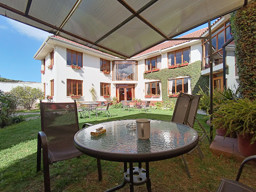 We were so glad we booked Rincon Aleman, as it is wonderfully quiet and peaceful, unlike the town centre. There is a garden with tables and chairs to relax, where hummingbirds hum, and a rooftop patio where you can gaze at Volcan Chimborazo (highest mountain in Ecuador) even if the view is partially spoilt by somebody thoughtlessly putting a water tank atop a new apartment building a couple of blocks away.||||Owner Elena was wonderfully welcoming, and our room was large with a view up towards the mountain. The bathroom was big too. Breakfast was very good. Elena even gave us a lift into the centre when she was going in that direction.||||The only slight negative, and it only just prevented me awarding 5/5, was that the water ran out. It was fixed fairly quickly, by switching to the other...