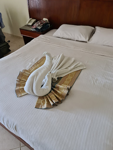 Read moreDecent hotel with it's own section of beach. We stayed in a refurbished room which was nice. There were 2 single beds and plenty of room for 2 cases on the floor. The bathroom started to smell of backed up pipes during the second week. Wi-fi was a good reception in the room (Block 2), in reception and at the beach. There were the usual towels on sunbeds before 7am every morning, although there were still plenty of beds to choose from, even late morning. The toilet at the beach had a very strong unpleasant smell. OK beach, without much sand. The sea has a very gradual increase in depth, but bring some flip flops or shoes as its very stony. There are quite a few jelly fish, which do not sting. There is a bar at the beach serving soft drinks, beer and a limited amount of cocktails. Most of the staff are friendly, with the garden staff eager to say hello and the hotel manager walking round and speaking to guests.