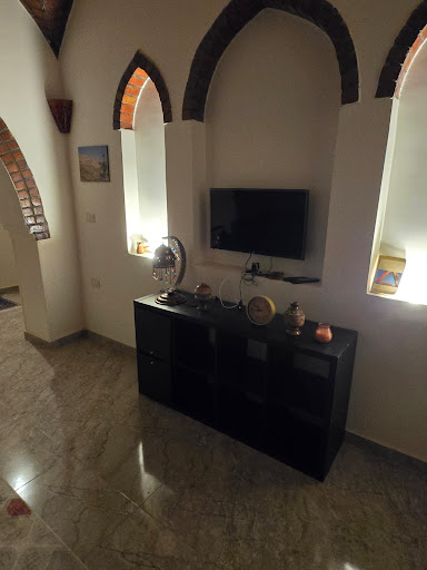 The house itself was spotless and very comfortable. There are two bedrooms, a spacious living room with an open kitchen, and a clean bathroom. The beds and sofas were very comfortable — we had two nights of truly restful sleep. The towels provided were clean and fresh. The Wi-Fi was fast, and although we didn’t use the TV, everything looked well maintained. Mohammed had already done all the cleaning and pest control, so we had no problem with flies or mosquitoes. There’s also a lovely small garden with a few gazebos. We had breakfast there the next morning — Mohammed prepared it himself for a small extra fee. It was simple but tasty: fried potatoes, olives, eggs, and tea — a nice start to the day.