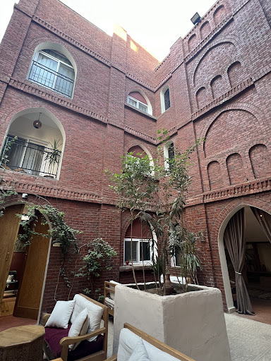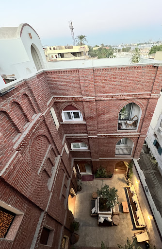 Ils ont créé eux-même ce projet qui a pris 5 ans de travaux. Le bâtiment est d’inspiration Riad avec une cour centrale ce qui permet les échanges et la convivialité au petit déjeuner. Cet esprit permet aussi d’avoir une privauté sur la ruelle et d’être au calme. L’architecture est belle et bien égyptienne avec de jolis détails. Chaque meuble, luminaire, objet est choisi et créé par des artisans locaux.