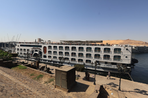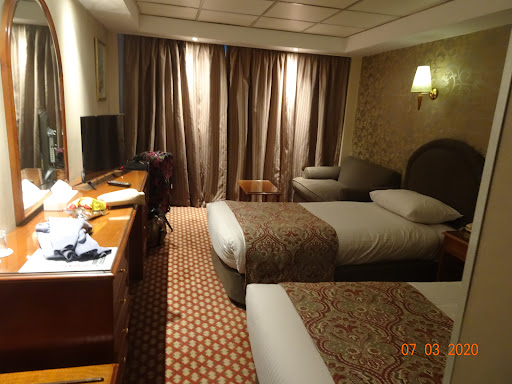Read morePart of a TripADeal tour would not of chosen this cruise if doing independently. Room 220 level of foyer. 4 nights. I wouldn’t say this is a 5 star cruise as listed on itinerary. Old looking and in need of refurbishment. Boats are moored 8 deep and to get to your boat you walk through the foyers of all the other moored boats until you get to yours. Very funny I thought. The boat has 4 levels. Restaurant lower level, level 2 foyer and rooms, level 3 rooms and bar with a couple of tiny gift shops and top deck small pool, bar undercover and open air seating. Plenty of deck chairs and tables and chairs to sit on. They also provide beach towels. All meals are supplied. But did find many people very greedy on a boat and staff didn’t top up some of the foods. Once it was gone it was gone. That happened a couple of times when we got back from a tour late, food was cold and only bits and pieces to choose from. Also it is 1hour seating only and once they are ready to clean up they ask you to leave. You cannot take your own drinks into dinner then must be purchased. Prices are reasonable. Tea and coffee is only free at breakfast. Many of the pastries seemed to be a day old. They had entertainment in the bar each night but didn’t attended, did hear they were pretty good by others on our tour. You have to pay 150 Egyptian pound a day for internet and it works best in the foyer not in your room where you want it. So you don’t share they enter the password and if you want to swap with someone they disconnect and reconnect - only 1 person on at a time. The room is a pretty good size. Ours had 2 large very hard singles beds. A 2 seater lounge by a window that opens as well as a chair and coffee table. There is a fridge. We had to disconnect the fridge so we could connect our power pack I think the only free one was above the mirror in the bathroom. The bathroom shower was tiny, had to leave the door open otherwise couldn’t wash properly. The hairdryer was one of those ancient boxes attached to the wall with the plastic coil attached to the head, 1 speed only. Towels are grey not clean looking at all probably washed in the Nile! Some nights the cruise sails at night other nights moored. Only our 2nd short cruise cruise and I’m convinced I don’t like them. I’m not the relax and sit around do nothing type of person. Will never choose a holiday with a cruise again,...