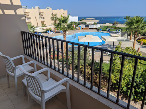 Read moreThe apartments are very spacius, the reception and breakfast area are also very spacious too. There is a room with a big TV for watching sports/films too, which is excellent and comfortable. The pool area has plenty of loungers for many families.||||Incredible views over the Red Sea when you open your curtains in the morning. Balcony is excellent for a lovely morning view. Food at breakfast is fine, the only downside was minimal wifi in the rooms, had to be in reception to get a strong signal. ||||The apartments are atop of a big hill. There is a Tuk-Tuk, driven by super friendly staff members who will pick you up from the security gates down at the road and bring you up to the hotel, which is very handy. They will also take you down to and back from the private beach for the Sky View...