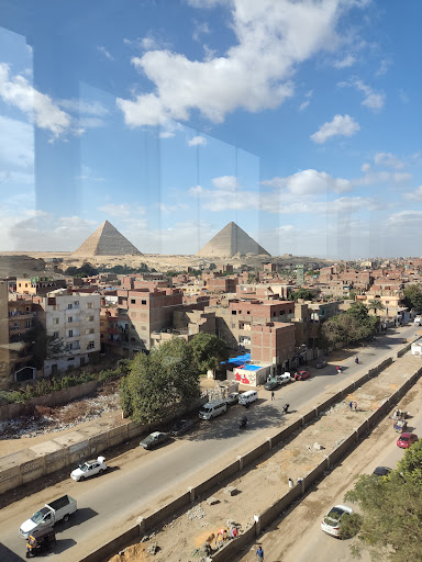 The hotel isn't perfect as our door handle fell off, the wifi only works on your phone and not on a computer as they don't know the password but only have a QR code to access it, the TV wasn't connected to WiFi so it obviously didn't work and the busy street below is very noisy most of the night but the view is spectacular and I think these negatives are very uniform for most hotels like this in this price range of under $50/night around Cairo . They also have a great rooftop for hanging out open to the elements and great for viewing the pyramids. I'll try and post some photos. From our room in #4 on floor 4 which is the only completed floor for renting I could see the pyramids from my bed. Super cool for us. I wish I had a review like this to read before coming to ease our minds.