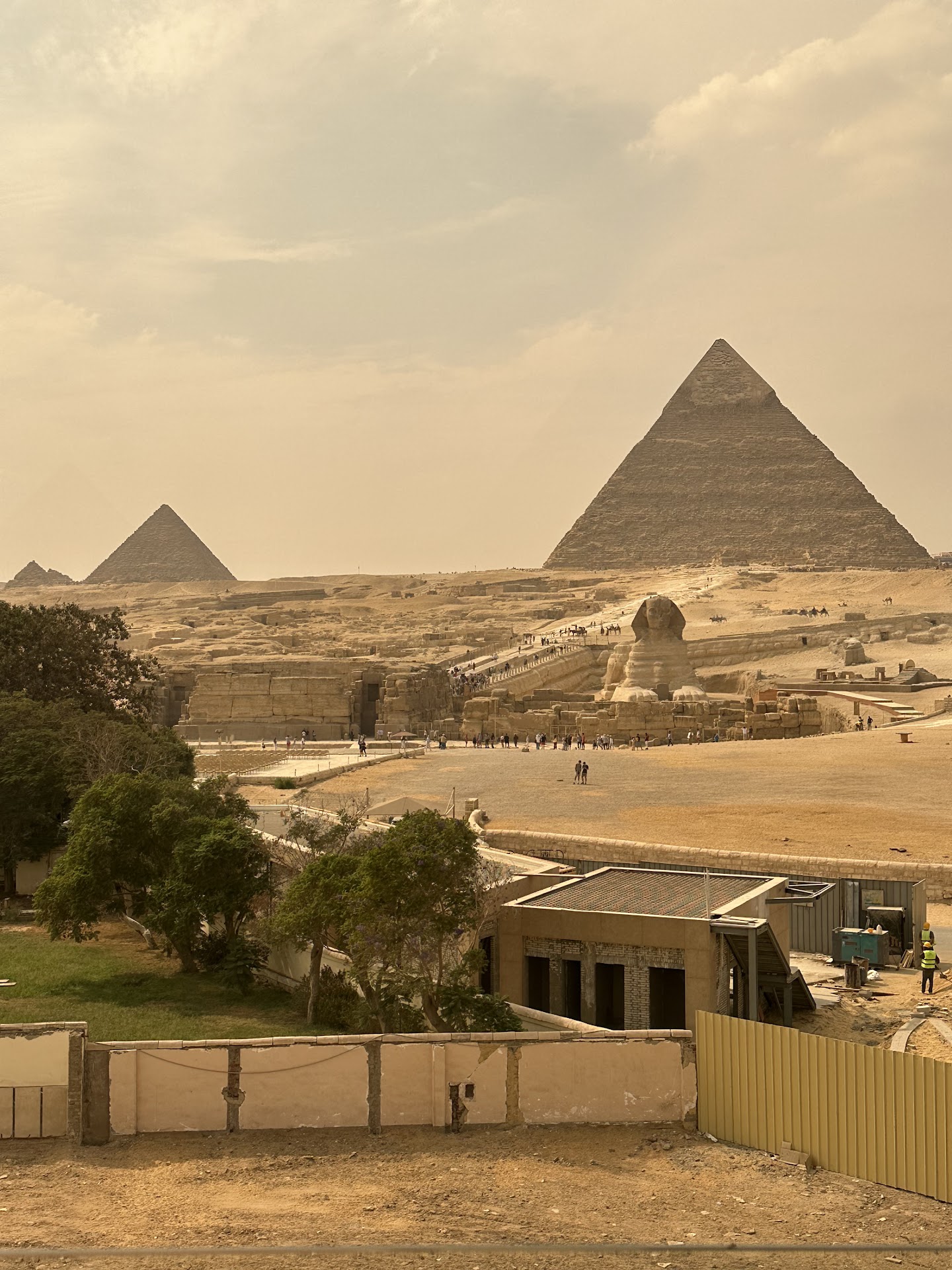 The hotel is opposite the pyramids and provides panoramic views.Our breakfast was rich and we could take it to the terrace watching the pyramids.In the evening you can watch from there the spectacle "Sound and Light ¨ drinking a beer. Refreshments are free of charge from the hotel and the owner offered us popcorn and shisha.Towels were changed daily and the rooms were spotlessly clean. On the first day the owner sent a van to pick us up from the airport and make it easier for us to get a visa there. At the hotel when we arrived they offered us gifts to everyone and a local drink.Kindness and service were honest to us.Sometime a girl from the group had an accident with her shoe.When they saw it, they picked it up and returned to us in a few hours repaired.They do not accept to pay anything . The reservation was made by a group of 9 people.The owner gave us a daily van with driver and guide to take us to all the sights.Congratulations on choosing Hamad Ibrahim as a guide, he was an expert on history and explained us everything wherever we went. He had friends in almost all the sights. we did not have any inconvenience at the entrance and issue of the tickets.At the same time, he protected us from the salesman that were persistent in their attempt to sell something to us. Every morning before leaving, we were offered sealed water to have with us all day. Breakfast is served from 7.00 to 10.00. On the two days of the six we stayed there we had to leave at 6.00. The staff had prepared our breakfast in a pack and waited for us at the hotel entrance before we left. When it was time to buy souvenirs from Cairo, Hamad Ibrahim went to a warehouse with a lot of variety that we got a lot of stuff at half price. When we walk after the market of Al - Khalili and compared the prices , we realized that we bought at a very good price