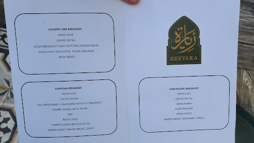 Read moreAs numerous other reviews report and pictures prove, this hotel is underneath the magnificent Zeeyara rooftop restaurant, from which we enjoyed a very tasty dinner with magnificent views of the pyramids. The pyramids are very close, with EPB being almost at the edge of the neighborhood with only the Mena House golf course between you and the Giza necropolis. ||The top floor of the hotel (floor 5) has a small terrace which also has an excellent view of the pyramids, and has 5 rooms considered "pyramid view". 504 and 506 enter from the central lobby anbd have a direct view out their window, and plants providing a bit of a wall on the terrace. Rooms 508 and 509 have to be entered from the terrace itself and are on the other side of the terrace, but also have a direct, unobstructed view from inside the room. Sadly, we were given room 505, which is set much further back and I would call having a 'mostly obstructed' view... I include pictures so I won't be called the big liar. ||The room itself was clean and adequate, though it looked as if the door had been kicked in at some point and not repaired- so the lock/deadbolt really served no purpose as the door could be pushed open easily. There was always a member of the hotel staff in the lobby, so we felt safe. Youseff, a nice young man wearing a hotel labeled hoodie, was waiting at street level when our Uber dropped us off and helped make sure we found the hotel entrance and got us into the elevator and up to check-in on the 5th floor. As other reviewers have said, you will eventually see the sign, but the entrance is not incredibly obvious for first timers, so Youseff was a nice help. Picture included. While the restaurant dinner (not included) was wonderful, the included hotel breakfast is very light (picture included of the 3 options), so factor that in if you are planning a big adventure day around Giza. It also does not start until 7am, which for certain travelers wanting to get an early start for hot days, might be a bit late. Million dollar view is still the same for dinner and for breakfast. We went to make hot water in the kettle in our room later and found it had EU plugs... man at the desk had it replaced with a Egyptian plug kettle in under a minutes. ||Good service all around, a capable small hotel if you want good proximity to the Giza complex and a very easy dinner/bfast restaurant with spectacular views of the pyramids... this is a great value option. Be prepared for a small disappointment if you book a pyramid view room and get Room 505... but perhaps request rooms 504, 506, 508 or 509 specifically and hope you get it. Overall, with the terrace and restaurant, can't complain too badly. Side note, the Mena House entrance to the Giza complex is closed as of April 8 with the new Great Entrance opening on the opposite side. The hotel still has the great views and you are relatively close to the action, but can walk in the old Mena entrance like you could...