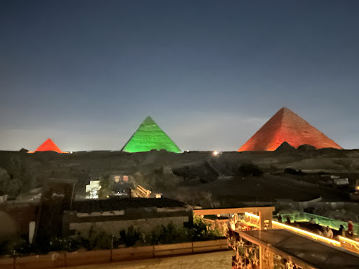 Read moreFive stars for hospitality, kindness and empathy! My wife and I had a reservation at the hotel for a 1-night (Tuesday) stay in late Dec 2023. We arrived around 11:00 am with the intention of leaving our bags at the front desk, visiting the pyramids and returning late evening to check-in. To our surprise the manager at the front desk told us that our room was ready to check in! The room was spotless and very nice. The view of the pyramids form the room was breathtaking! The hotel lobby was spotless with the ambiance/aesthetics depicting the Egyptian civilization. En route to the room, everything was in order and gleaming! The bell boy who helped us to the room was very nice and friendly. Back at the lobby after check-in, the manager offered to arrange a tour of the Giza pyramids which we took. Considering the Sound and Light show at the pyramids, happens only on Wednesday, Thursday, Friday and Saturday, he offered for us to view it from their roof top restaurant the following evening (Wednesday) despite us having been checked out. This would mean we could save on the entry tickets (USD 26.00/person) to see the show! How very nice! Now for the part which demonstrates true hospitality, genuine empathy for guests and charitableness on the part of the hotel management. Later that evening I started to feel unwell and into the night it worsened. Since the plan was to stay in the area and do additional sightseeing, shopping and cap it off with the Sound and Light Show in the evening, me becoming unwell threw this plan into disarray. Considering our only chance to see the Sound and Light show was Wednesday evening, my wife asked the manager if he could extend our stay in the room until evening for an additional fee as our plans to go outside have to be cancelled due to me being unwell. He looked though the bookings and told us the current room was unavailable, but he could accommodate us in another room, which we happily took up. The second room was as good as the first ⌠spotless and very nice! When my wife asked for directions to the pharmacy, in addition to providing the directions, the manager sent a bell boy to accompany her to the pharmacy. This meant she did not lose her way to the store and in case of a language issue, the bell boy would help. Truly a noble thought! After having accommodated us with a room, helped with getting medicines from the pharmacy earlier in the day, in the evening when we finally came down to checkout, the manager refused to accept any rent for the additional hours of stay! We insisted that he charge us for the room as the help he rendered was immeasurable. Even then he did not relent. After much insistence he suggested we donate any amount into a charity box placed in the lobby in lieu of the rent. We were truly speechless at his gesture. My wife and I still have no words to express our feelings. Such acts of kindness truly reinforce the belief of humility. I sure will pay it forward. We went up to the roof top restaurant and experienced the Sound and Light show. I have traveled to many parts of the world and stayed at many hotels. Undoubtedly, the hospitality, kindness and empathy shown by the hotel manager and his staff at Great Pyramid Inn, Giza, is something I have not experienced before and will cherish and treasure forever. Thank you management and staff of Great Pyramid Inn, Giza! You the best!