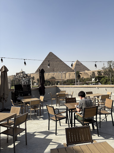 ✅ Price vs. Service: Outstanding. I paid EGP 4,000 per night, and honestly, the value was beyond expectations. 🤝 Warm Welcome: The staff greeted me with genuine hospitality from the moment I stepped in. ✨ Reception: Simple, cozy, and easy on the eyes—very calming atmosphere. 🚪 Elevator: Yes, there’s one! 🛏️ Room: Super clean, fully equipped with a fridge, iron, hairdryer, kettle, AC, and a safe. 🍽️ Breakfast: Classic Egyptian breakfast—nothing fancy, but full of flavor and authenticity. 🗺️ View: THIS is what dreams are made of—an incredible, direct view of the Giza Pyramids. 🌇 Balcony: Imagine sipping coffee while overlooking one of the world’s greatest wonders! 🛁 Bathroom: Loved that the shower and toilet were in separate areas—practical and clean. 🧴 Amenities: Shampoo, body wash, loofah, and more were all provided. 💼 Staff: Every single person I encountered—from reception to housekeeping to the restaurant—was genuinely kind and respectful. ☕ Rooftop Restaurant: Located on the 4th floor with an unforgettable pyramid view. Highly recommend enjoying a coffee and shisha to elevate the moment.