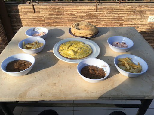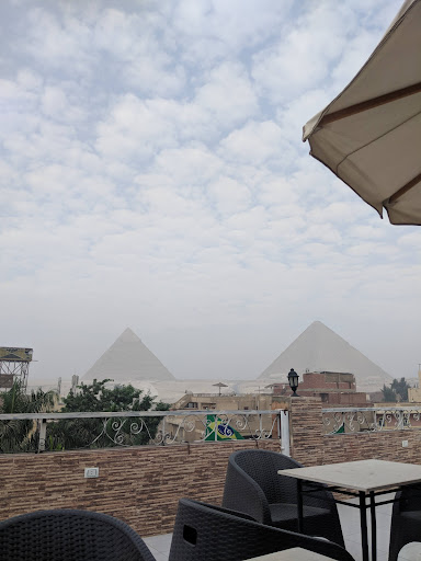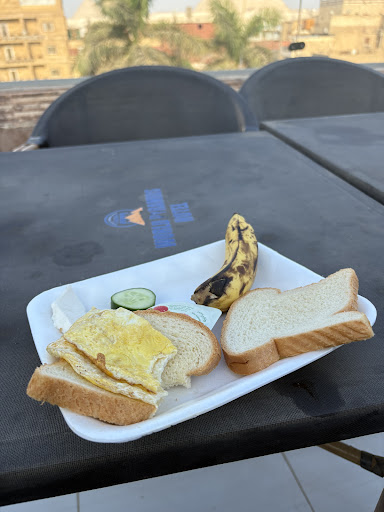 They serve breakfast(the only photo I took) but they don’t give you tools to eat it. Ate it with my hand. The staff gives a bad vibe, but you have to ask them to make you breakfast. You’ll eat at the roof top with a nice view of the pyramids but the chairs and tables seem like it’s not changed for how many years.