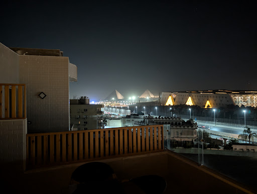 Read moreThe hotel is located like 10mins from the GEM Museum and the Pyramids... with a spectacular view of both!! Got to enjoy them lit up and colorful most nights... wish the rooftop was my room lol... the entire staff was AMAZING!!! Everyone is so helpful, kind, caring and protective!!! traveling solo, as a tiny African American woman that was really important to me lol... Only draw for most would be the area, it is still being worked on... but you're here for Egypt, not the hotel!! They allowed me the safety to be care free about my room, luggage, belongings and even walking with me when I wanted to free roam lol... The rooms and hotel is Egyptian themed, which is EXACTLY why I chose it!! Room was very clean, fresh linen... The view was an exciting extra, the lounge room is gorgeous also!! I don't eat breakfast much, only fruit and some tea but that did not stop them from providing me with a complete meal including my daily requested fruit lol... even packed me a to go lunch on my way out(I forgot it and he chased me down to provide it!!) They really make you feel safe and well taken care of!! I will DEFINITELY be returning to my new...