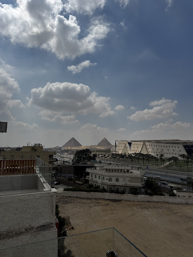 Wonderful hotel with an amazing full view of the gorgeous new museum and partial of the pyramids. What makes this hotel amazing, is the staff and attention to detail. From the decor to amenities to service. The staff were very accommodating, cheerful and just wonderfully sweet and smiley all around. Props to Alaa, Mohab, Wael, Karam and Dhalia. Lovely rooftop terrace. The rooms are wonderful, I sprung for the bigger premium double to enjoy the huge private terrace and view, don’t regret it!! The room was fantastic, super clean, very modern and spacious and THE best bed and pillows I slept on in a while! Breakfast served in my room or nextdoor, in the terrace was lovely, authentic hot Egyptian food and plentiful. The staff bent over backwards to accommodate requests, help with arranging cars or activities. The only issue is due to the location being quite new, it becomes a challenge everytime I order a cab, however, staff are always very happy to speak to the driver and guide them. That should also resolve itself once the nearby construction is complete. Also no immediately nearby restaurants and cafes unless you go for a long walk or wait for a car. But delivery can bring anything to your room including a in-house menu. The building and the area are very quiet and clean/ safe. Don’t be fooled by the up and coming dead end street. The view is all on the other side. Tip: schedule sometime for the terrace or balcony. Night and day. Both different and gorgeous views! Have a coffee or a drink and take it all in.