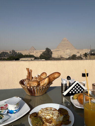 Read moreWe can not say enough about this hotel. ALL STAFF WAS SOOOOOO WELCOMING and treated us like family. One of the personnels wife even cooked for us, like who does that. I wish I remembered everyone's name but it doesn't matter because everyone was attentive to our every need. Questions always answered and suggestions always given. Now let's talk about the ROOFTOP VIEW!!! JUST PRICELESS!!! I just wanted to sleep on the roof. The room was comfortable. The stand up shower a little small but it worked for me and I'm a big momma. When you are at the entrance of the hotel you encounter the horses and camels (I just loved it as I'm an animal lover!) because you're LITERALLY AROUND THE CORNER FROM THE PYRAMIDS!!! Mohammed went out of his way to assist my husband with purchasing a cashmere gallibaya and start which is the Egyptian tradition for some. I wish we had more time there as we only stood a week. Continental breakfast saved us some money. Very humble and serving people. They all made us feel so comfortable. We stood there for Christmas. Love you all at Pyramid Glory Inn.....we will be back and always recommend your hotel. Thank you for making our stay feel as if we lived there....