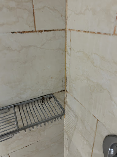 The bathroom was in a terrible state, with missing sealant and mold everywhere. With our child suffering from asthma, this was simply unacceptable. The shower was rusted, and even before we used the toilet, puddles of water had already accumulated on the floor. To make matters worse, the bathroom door stopper was missing, leaving behind a protruding 1 cm screw—a clear health and safety hazard.