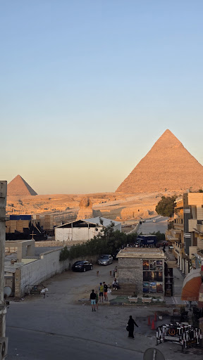 Read moreLocation|There are two entrances for the pyramids premises, one from where the cars and buses can enter and another one is located on the other side which is open for the public.|This hotel is located exactly next to the entrance for the Pyramids, which u can gef an idea in the pictures.||Experience|When i was trying to look gor the hotels nearest to the pyramid i found many of them with pictures but i was nit convenced as tge pictures were not so good and it seems to me they are edited and photoshoped, but i still booked the hotel thinking if i do t like it i will change the next day. |But the moment i reached the hotel i was greeted by the front office employee Mr.Amir who escorted us in a very nice manner and also offered us some welcome drinks, we booked a room with the balcony, which we booked through booking.com, Amir escoted us to our room after all the formalities. The moments I entered the room I was so much surprised and happy with the view, exactly as I wanted. I went to the roof to have the pyramid view, OH MY GOD. these were tge first words after reaching the roof and looking at the pyramids from here. This hotel is exactly alligned with the great Sphinx statue. The hotel is clean and located exactly at the best view point. Even you dont have to buy the tickets for the light and show at pyramids which happens every evening. These are other hotels also near to this place which pravide you the similar view but this is the best among them all. The area is also safe yes there will be people approaching you to sell things, but i think they are doing there job, you do yours either tell them no or just egnore them they will go away themselves. Apart from this the area is really safe and have quite a few dinning option aroud if you want to dine out. There is a KFC also just opposite to the pyramids ticket window. There are two rooftops in the hotel one above another, which makes it the closest and the highest viewpoint hotel in the area. Do not go with too much of expectations as its not a fuve star hotel, but they are doing a really wonderful job. For the view this hotel should get 10 out of 10.||Services|The view is amazing from this place as well as the service is the best, I am associated with the hotel and the hospitality industry so i know a few things in much better way. The rooms are clean amenities are provided like soap, shampoo, hair dryer, tea sef up, electric kettle. Which is really basic but still very important. Turndown service from the housekeeping is outstanding, really appriciated to all the housekeeping staff specially the girls in the red uniforms. |Breakfast was included in our package, the breakfast is basic with some local cheese, breads, fruits, juice, omelete and tea or coffee. Good enough to start your day and keep you going. They have so.e food menu available which is quite expensive then outside buts its worth it, if you want to enjoy lunch or dinner at the rooftop with the beautiful view of pyramids. Overall it was a wonderful experience staying at this place. All the staff including manager Mohaammad and another emplyee Mohammed and for most of them i dont remember the name but all the staff was very helpful even the team serving the breakfast is very effeciant and active as people have to leave early for the tours so the breakfast was served quickly. |I hope the pictures will give you the better idea to make the decision and to support my words. Have a nice stay whenever you will be there. This hotel is also sold as Sphinx guest house.|Free wifi and free room service also have the lounge...