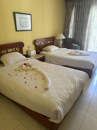 Day One. Arrived at 11 PM. The guy on the reception desk asked to speak to me away from my wife. In honour of International Women's Day he says I can have roses delivered to my room for only 15 Euros. I said, âNo thanks.â He tells me he can do the flowers for 10 Euros. Once again, I said, âNo.â I knew we were too late for the allotted mealtimes, but it had been mentioned that arrangements would be made given the planned lateness of our arrival. The guy on the reception desk explained this as though it had been a great hardship and personal sacrifice. He said we would find that a special snack had been left in the diamond room. I asked where the diamond room was. He made a vague gesture to his right. I suspect, because I didn't want to buy flowers, or tip him for providing the agreed food, it was too much trouble to escort us there. Because of the lack of signage this meant we had to explore most of the hotel's disappointing dining rooms. There was a plate of something desiccated in one room but no suggestion we were meant to eat this (even on a bet). We were then escorted to our room by a gentleman who waited with his hand out for a tip after walking us ten yards to the door. A moment later our luggage was brought to us by another gentleman who waited with his hand out for another tip. This cupidity became a recurring theme throughout the holiday and spoiled most of our time in Egypt.