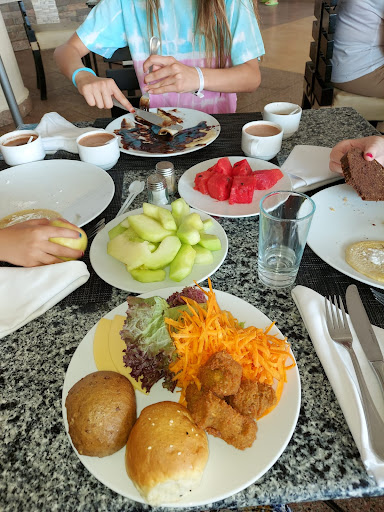 The food is a complete disaster. Everything is made from the cheapest ingredients, heavily reused, and tastes the same every day. They try to fake “variety” by cutting the same sponge cakes or puff pastries into different shapes — all soaked in sugar syrup. What looks like 10 different dishes is actually the same food repeated five times. They cut fruits and salads as it was a cook show... looked poor and pathetic. Every day: ground beef in different shapes — “kofta,” “meatballs,” “burger” It’s ridiculous. The so-called “fish stand” advertised tuna and barracuda, but when we asked, they offered us small mackerel, and kept promising tuna “in 5 minutes” — for over an hour (there was not tuna at all, just a fake advertisement) Total disrespect.