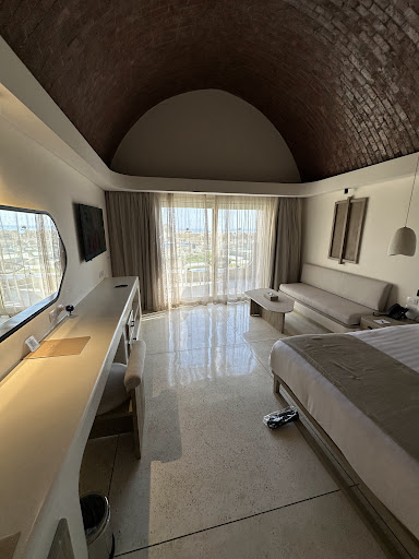 Hotel & Accommodation The resort is new, modern, beautifully designed, and gives off a very luxurious feel. One of its biggest advantages is that it’s not overly large – everything is within a short walking distance, whether you’re heading to the pool, the beach, or one of the restaurants. Despite its smaller size, the hotel never feels cramped or crowded. In fact, one of the highlights is how peaceful it feels. There were no long lines, no overcrowded areas, and the pools were never packed with people – a huge plus compared to many other resorts in Egypt. The rooms are spacious, stylish, and spotless, cleaned daily with fresh towels and linens. The minibar is restocked every day and includes water, soft drinks (Sprite, Coca-Cola, tonic), juice, and even beer – all part of the all-inclusive package.