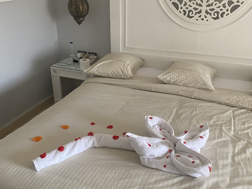 Food and drinks the hotel has a main buffet style restaurant and 4-5 other restaurants. Breakfast is decent (heavily based on eggs if you’re a fan of eggs). You have other options like falafel, salads, pancakes, waffles, selection of breads and pastries, porridge. Note, the salads are the same everyday and the selection is not great. Breakfast finishes at 10am but they start clearing 15-20 minutes before. I was still eating and the waiter tried to take my plate. I found this very rude. We tried the indochinese restaurant and Indian restaurant for dinner. The indochinese was very good the first time (the menu is limited and the same every day. It must be booked a day in advance via reception). When we went the second time round, I ended up getting a really bad upset stomach (to the extent I was puking all night). The Indian restaurant on the other hand was poor. Batched cooked and salty. However, they did have other items on the menu at an extra charge. Some items were tasty (especially tandoori prawns). The main buffet style restaurant was okay - nothing special. For a 5* I was expecting a wider selection. One thing to note is that dinner finishes at 9pm in all restaurants (inclusive option). Not ideal if you have done a full day excursion with no dinner option. As a general tip, if it doesn’t taste right or if it is warm when it’s supposed to be cold (like salad and dairy) or if it is cold when it is supposed to be served hot, don’t eat it. Hotel management should consider in investing in more cold units so salads and dairy can stay cold. Otherwise more people will start complaining. Alcoholic drinks are severely watered down and of cheap quality. It might be worth taking a few bottles from duty free to enhance the experience. Also, the cocktails are not what you think they are. Standard ones like pina colada are okay but do not be surprised if the rest taste different. In my opinion the best cocktail was sex on the beach. Order a separate shot of vodka and top it up, otherwise it tastes like a tooty fruity juice. The slope outside the main restaurant taking you to the pools and rooms is quite slippery. You can even slip in flip flops. The beach club is a good option for lunch (grilled sandwiches, pizzas, pastas, salads) There is a hidden dessert place near the beach club (Blue cafe). The menu looks appealing but what you get is different to what the menu states. I ordered a crepe with a warm date filling and vanilla ice cream. I got a plain crepe with chocolate sauce drizzled on top and vanilla ice cream. However, the crepe itself was nice.