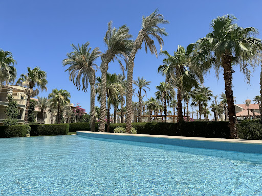 Eine tolle Location! Da sie nicht direkt am Strand liegt, ist sie nicht überfüllt. Ich war im Mai da, schon sehr heiß, doch im schönen Garten unter schattigen Palmen erträglich. Die verschiedenen Pools sind wunderschön. Es war nicht viel los, wir waren teilweise alleine dort. Es ist alles ganz toll gepflegt: voller Blumen, grün, Rasenflächen, Hecken. Alles tipptopp. Es ist kein Hotel, sondern eine Appartementanlage. Die Poolbar und das Restaurant am Pool waren nicht betrieben. Das hatte uns aber nicht gestört, somit war es schön leise. Wenn man möchte, wird man mit Lebensmitteln für das Apartment beliefert. Ansonsten kann man ein Uber nach Hurghada nehmen (circa 35 Minuten) und dort wesentlich günstiger einkaufen und sich mit allem Notwendigen eindecken. Wasser nicht vergessen! Das Wasser aus den Leitungen sollte man nicht trinken, wie überall in Ägypten. Auf dem halben Weg nach Hurghada liegt die Senzo Mall, auch da gibt es einen riesigen Supermarkt, mit allem, was man benötigt. Ist dann aber etwas teurer. (Uber zur Senzo Mall kostet circa 50-60 LE, nach Hurghada je nach Tageszeit zwischen 100 und 150 LE). Es gibt einen Service mit kleinen Elektroautos, die einen zum Strand bringen, wenn man die 800 m nicht laufen möchte. Wir haben das nur einmal genutzt, Bewegung tut schließlich gut. Die Elektrocaddies bringen einen auch nach Sahl Hasheesh an einen größeren Strand, der bewirtschaftet ist, und an dem Service bereitgestellt wird. Man kann die Abholzeit gleich vereinbaren. Da die Apartments unterschiedlichen Eigentümern gehören, sind sie individuell ausgestattet. Grundsätzlich kann man sagen, dass die Anlage einen gehobenen Standard bietet, der sich vom Billigtourismus deutlich abhebt. Auch wenn es sich insgesamt um eine fünf-Sterne-Anlage handelt, sollte man berücksichtigen, dass die einzelnen Eigentümer unterschiedlich mit Beschädigungen in ihrem Apartment umgehen, und über kleinere Mängel muss man hinwegsehen. Dafür man kann ganz herrlich am Strand die Promenade entlanglaufen bis in den Ortskern nach Sahl, Hasheesh (circa 4 km), allerdings gibt es unterwegs noch keine Cafés, kleine Bars o.ä., die etwas anbieten. Für diejenigen, die gern so etwas haben, wäre es daher der falsche Platz. Wer aber gern läuft, abends vielleicht auch joggen geht, für den ist es hier ideal. Wir haben uns rundum wohl gefühlt, würden jederzeit wiederkommen, und können für Ruhesuchende ohne Remmidemmi diesen zauberhaften Ort sehr...