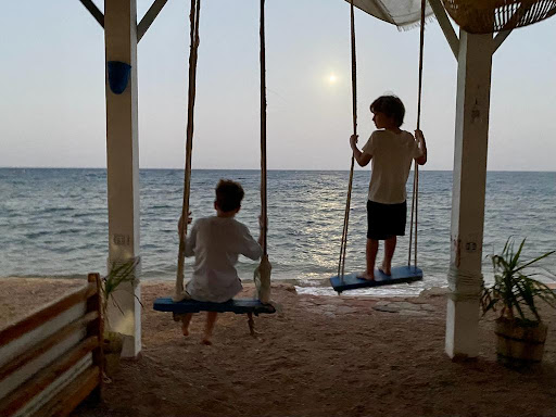 The location of the hotel is nice spot Surrounded by mountains and facing the beach. It is a bit far from Dahab center - 45/50 min walking but the walk is safe and pleasant especially during the day along the beach. Taxi take only 50-100 EGP (1-2โฌ) to take you to the center and often people from the staff drove us in their car. They even arranged our taxi pick up from the Sharm el sheik airport to go and come back.