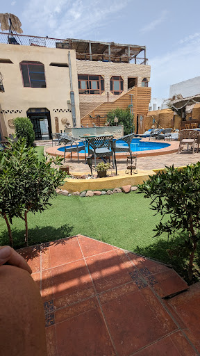 Read more😊: Супер по соотношению цена-качество!!! Нам очень понравилось, продляли наше пребывание два раза)) Атмосферный восточный дизайн отеля, фотографии полностью соответствуют действительности. Прекрасные люди - владельцы и персонал, всё красиво, чисто, уютно, комфортно, тихо, безопасно, до моря минут 5 неспешным шагом)) Совсем рядом (метров 100) остановки автобусов в/из Каира, Шарма. Вокруг лавочки и магазинчики, аптека, алкоголь по нормальным ценам (пиво стелла 30 е.фунтов за 0,5; бренди champollion (наш топ в Египте) - всего 50 е.фунтов за 0,5; рядом недорогая и вкусная местная еда (например, нам очень понравились шашлыки, салаты, картошка с корицей и др. в барбекю для местных - идти от отеля в сторону остановки автобуса и на шоссе направо второй ресторанчик - увидите там большой мангал и много кошек:)) Набережная в пяти минутах ходьбы - там сплошняком магазинчики и рестораны с видом на море, в некоторых бывает живая музыка, там же большой круглосуточный супермаркет. Кстати, везде туалеты, никто не просит оплату за них, можно в любой ресторан, дайв центр или отель обратиться - пустят, никто ни разу не отказывал)) В районе набережной тусовка до глубокой ночи, но при этом в отеле тишина. Бассейн всегда чистый. Рядом с бассейном минибар - кулер с питьевой холодной и горячей водой, раковина с краном, электрический чайник, растворимый кофе, чай (разный), сахар, пластиковые стаканчики и ложечки - всё это бесплатно и в любое время. У бассейна достаточно столиков и лежаков. Также можно приятно посидеть на оборудованной для отдыха крыше отеля с видом на городок, горы, рассветы, закаты и даже узкую полоску моря)) Всю идилию дополняют двое добродушных собакенов)). 😢: Ну и маленькая ложечка дёгтя, да)) Водопроводная вода очень жёсткая, солоноватая, краны быстро ржавеют и всё немного подкапывает. Санузел небольшой и душ прямо над унитазом, как это часто бывает в Египте, Индии, ЮВА и т.п., то есть никаких загородок, весь пол и всё вокруг в воде)) В нашем санузле к тому же наклон пола для слива был неправильный и вода на полу застаивалась, нас эта лужа не устраивала и по нашей просьбе нам выдали швабру - с её помощью мы каждый раз после душа собирали воду с...