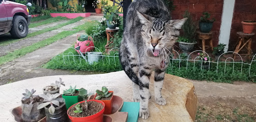 We stopped in for a meal at the cafeteria and were surprised to find such a cute garden, accommodating service and ESPRESSO machine! We ended up taking a room for two days, eating all our meals and doing our laundry here. The rooms are just ok, nothing fancy, shower is heated with an electric apparatus but I found that for 30 bucks it was a nice experience. They are pet...