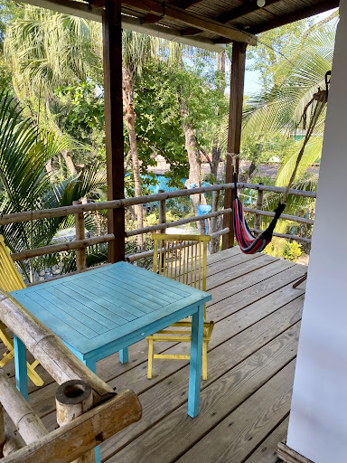 Eco del Mar is a bit more expensive than many of the more hostel-dorm places in El Tunco, but if you are looking for a bit more comfort and space then well worth the extra.||||Recommend that you book a room on the second floor as they are a bit more secluded and the wooden balconies are beautifully constructed. Each room though is pretty big, enough to sleep 2-4 people, and come with a fridge and small cooking area. They all have a bit of balcony space with hammock to collapse in at the end of the day. Air-con inside the room is very good.||||Roberto - fluent English speaking chap from El Salvador - runs the place well, the staff were all friendly and helpful, and they were very flexible with changes to our booking. Roberto also had great advice on where to surf and who the best surf teachers in town are. ||||The only issue can be noise - we had 3 good nights' sleep, and one night where the world's worst Karaoke duo decided to serenade the town into the early hours. Roberto was very apologetic about it next day but there was not really much he can do. If you stay anywhere in El Tunco and are a light sleeper, worth bringing proper ear-plugs.||||Top tip - if you are looking for someone to teach you to surf, ask Roberto to call Carlos. One of the most genuinely kind, passionate, positive people I met on my travels - all qualities that you will want in a teacher when you are learning to surf!||||Overall great experience and would come back and stay...