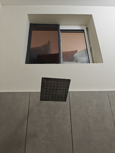 There was a window above our shower, we think from a storage space? I could hear there was a door being opened and a man talking. There was no way to cover this window. Felt very unsafe and uncomfortable having to take a shower here.
