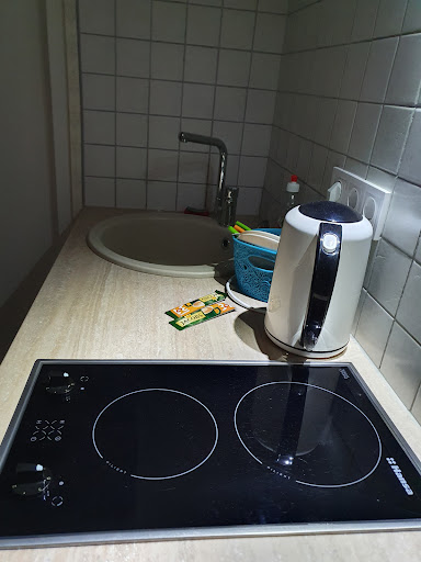 Комната маленькая, но оборудована всем необходимым для непродолжительного проживания, есть кухонный уголок, душ, микроволновка, холодильник, чайник, посуда.