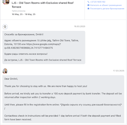 I recently booked a room at this accommodation through Agoda, paying with my bank card. However, shortly after, I received a message from the hotel staff stating that I must also send them a deposit of 100 euro via bank transfer, otherwise, the check-in would be impossible. This request seems extremely suspicious, especially since the booking was already paid for through a trusted intermediary platform (Agoda) using my bank card. Additionally, the deposit amount is twice the cost of the booking itself, which was only around 50 euro.