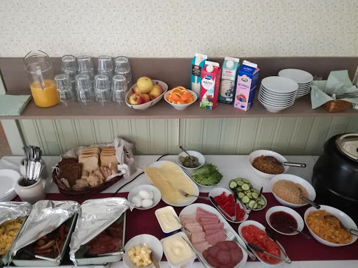 Aamupala oli aika keskiverto. Löytyi puuroa leipää ja leikkelettä ja juustoa. Mehu ei ollut vetinen kuten monesti voi olla. Jos mielii syödä jotain muuta yöpymiseen aikana, niin tarjolla näytti olevan pizza-/leikkele-/ranskalaislinjaa.