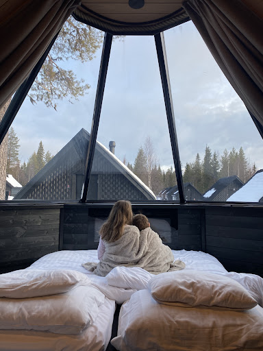Even though we had to wear the same clothes throughout due to the luggage delay, our stay at Northern Lights Village Pyhä was nothing short of magical. We had a fun husky ride experience, enjoyed a beautiful reindeer sleigh ride, got to play in the snow together, dined in a cozy, warm restaurant, tried skiing for the first time, lay in the snow under the Arctic sky, and best of all—our accommodation was absolutely wonderful!