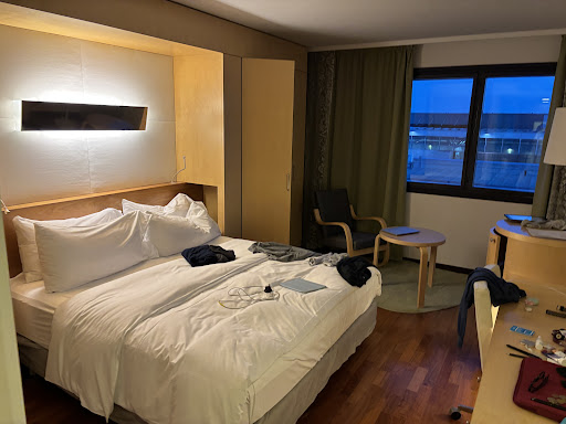 Read morestaff was unhelpful, we travelled internationally into Helsinki with 4 large luggages. When we asked whether they have luggage service we were told they are “very busy” at the moment and so cannot help with our luggages. I have never in my life been told by a hotel (let alone a Hilton hotel) that they cannot assist with luggages. they charge you for every single thing. If you want room service, it’s an extra 15 euros service fee just for them bringing up the food. This is obviously in addition to already paying for room service priced food. I have never seen an extra charge for room service just for bringing up the food - is the whole point of room service not having the food brought up to you, which is why the food generally costs more than they would if you were to buy takeaway yourself elsewhere. We were told that we may be able to pick up the food ourselves in the reception to waive that fee, but they were not sure and told us to check with the restaurants ourselves. If the fee was 5 euros I can live with it but 15 is extortionate, when the simplest pasta with tomato sauce on their room service menu costs 26 euros and a pan fried breadcrumb sole (basically fancy way to say fish and chips???) costs 35 euros. The water in the room is not complimentary unless you are a diamond gold or silver member, which is fine - but they cost 6 euros a bottle, which is not. The hotel is a bit of a walk from the arrivals. Beware if you have a lot of luggage as you are walking across a pavement covered in tiny little rocks, so you won’t be able to just push along your luggage- do grab a trolley and do not be fooled by comments saying this is a short walk. Also, a short distance of the walk is not under cover. Not sure what service this hotel is providing other than stuffing you in a room with a bed, but whatever little “service” they have (I can’t point to any...