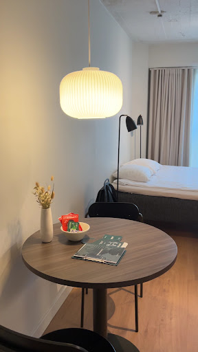 Read moreGreat location, everything was in very close distance, about a ten minute walk from the city center. Close to two supermarkets and to tram stops. The room was very warm, clean and cosy with everything you would need and an extra comfy bed. The kitchen in the room was fully equipped with even a dishwasher. The breakfast was very good with many vegetarian options. Many common areas such as kitchen, game room, working space, sauna etc. The staff was friendly and helpful, they even prepared us breakfast the previous day as we had to leave early the next morning and we would miss the breakfast hours. The check-in was easy, as well as the luggage storage. In order to go anywhere inside the building you need your key card (you can't even access the elevator without it), so if you loose or forget your card, outside of the office hours you had to pay a lot of money to help you get in your room again or wait until ten in the morning for the staff to help you. This actually happened to another visitor who I met there. That's great for safety but things like that happen. Also not exactly a disadvantage but the room didn't have a TV. Lastly you had to try many times to get in touch with the staff, even though they...