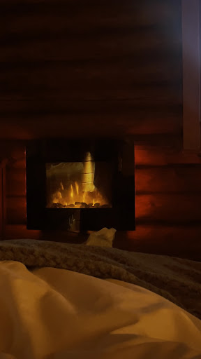 Such a lovely cosy place, we had the best time! The room was lovely, nice warm lighting and had an electric fireplace which was very much needed. The Lodge had amazing scenery all around, the lake was calming. We saw the Northern Lights every single night, which was incredible. The hosts are so kind and welcoming, they help you out with anything you need and the breakfast was great, they had bread, eggs, a toaster, spreads, yoghurt, oats, granola, ham and cheese. I highly recommend this place, please do not hesitate to book! I have included some pictures to show how beautiful it is! They also have a cute dog who is super calm and good. Thank you...