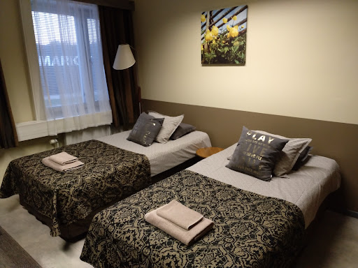 Read moreНочевали в большом номере, рассчитанном на 6 человек - две небольшие спальни с двумя кроватями, большая гостиная с диваном, ещё двумя кроватями и большим столом. От гостиной отходит полноценная кухня: холодильник с морозилкой, плита с духовкой, кофеварка, чайник (самого чая и кофе не видели), удобная просторная столешница. Есть базовая посуда для готовки, пара стаканов-тарелок и целая стопка одноразовой посуды. |В каждой комнате есть телевизор, кровати удобные, есть пара вентиляторов для жаркой погоды. |У дома бесплатная парковка, прямо напротив огромный S-market со всем необходимым для готовки.|Городок не самый примечательный, но где прогуляться вечером есть. |Из минусов - были какие-то проблемы с завтраком в гостинице (хотя с такой полноценной кухней это не было проблемой), не очень хорошо ловил основной гостиничный интернет, подключились к какому-то другому, и не работал замок на туалете. |В общем и целом, приятное и удобное место, для большой компании получается выгодно по цене + с такой кухней можно...