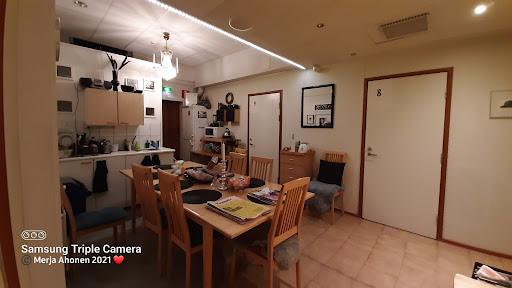 I have been accommodating here every month over the past year, and I can recommend this place as a very good value for money. The owners are friendly, the place is clean enough and you have your own microwave, fridge, waterheater and tv. If you are looking for a casual place to stay, this might be your choise. You'll get your own key and can come and go as you wish. They have some double rooms with twin beds and some singles, also a bigger appartment with a kitchen for groups (accommodates 4). Smoking outside in the garden, shared showers and toilet in most of the rooms. ||||There are a small shop and a cafe nearby, also the campus area to get some budget, but supebly good food! ||||This place is a popular spot for students and both them and the overnight workmen might keep you up while drinking beer...but usually they will get quiet after 23.00. ||||The only minus is the distance from city centre (20-30min walk) but on the other hand, you will be staying in the normal Finnish living area (small wooden houses), where you can get wonderful opportunities to walk outdoors...
