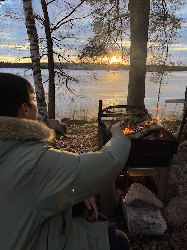 Read moreWe were looking for a last minute place to sleep. Called Leila at 5pm and we arrived at 10pm. We stayed in a dmall retro cottage for 75€ per night. I ordered breakfast for 12€ with no expectation. The small cottage was basic and slightly high price for one night. But thier breakfast was really worth the money! They have few designed eco toilet. (Also one normal tolet and shower by the main building. Their sauna is for rented by the lake with stunning sunset view. They have few more bigger cottages that we havent seen inside. The breakfast place has a small art gallery downstairs, with the sound of the creek running. The owner, Leila and Ari were very friendly and talkative. They are ready to help the visitors to find actovities in the area. We...