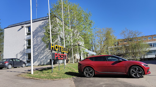 Small hotel - or should I say motel - in the centrum of the town Parkano. I think we were the only customers, and the friendly staff heated sauna just for us. Pesti is not the finest hotel you could imagine, but rooms are clean and quiet, and bed was comfortable. Breakfast was rather poor, but you must keep in mind that it was made just...