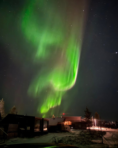 What a truly amazing place for our 5 night stay, location and staff are amazing. We were promptly picked up at the airport by Nicky the owner who provided lots of information on our drive to the resort. Upon arrival he showed us around our little cabin (Arctic Spa Suite) which included a jacuzzi on the outside deck, sauna next to the bathroom (wet bathroom) a comfortable King size bed and small area with a sink, refrigerator, water kettle and coffee/tea supplies. He also showed us how to use our phones to look for the Aurora/Northern lights and told us they would knock on the door when and if the Aurora came out. We settled in and around 10pm went out in search of Northern lights and it wasn’t long before they started to appear. We were treated to a couple hours of a beautiful display of Northern lights. ||The next morning, we received our daily continental breakfast in a crate, which was an assortment of meats, rolls, hard boiled eggs and juice. Our host, Essi, picked us up and drove us to our activity for the day which was a snowmobile trip on which we saw 2 reindeer and also one of the last sunsets before they entered their “polar night” in which the sun does not rise above the horizon. Our cabin was a little small for us so we talked with Essi/Nicky about moving and we decided on moving to one of the “Harmony” suites the next day. That evening we did the Aurora tour and were not disappointed. We were treated to sausages cooked over a fire and a beautiful display of the Aurora at a local lake. ||We did our dog sled activity the next morning and they helped us move all our things to the Harmony Suite in the afternoon. What a beautiful accommodation. This “cabin” consisted of a full kitchen, bedroom, loft with 2 bedrooms, sauna/bathroom with shower and another bathroom with toilet, as well as the jacuzzi on the deck. Each evening we enjoyed our long drinks/beers in the jacuzzi and sauna. We were able to see the Aurora/Northern lights 4 out of our 5 nights as one night it was snowing. ||We are truly grateful for Nicky, Essi and the shuttle drivers for making our stay with them so amazing- THANK YOU!!!! I am already trying to plan...